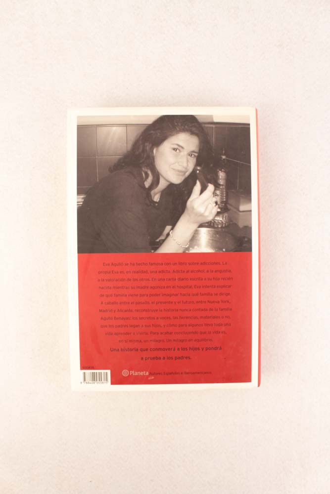 Eva Agulló se ha hecho famosa con un libro sobre adicciones. La propia Eva es, en realidad, una adicta. Adicta al alcohol, a la angustia, a la valoración de los otros. En una carta-diario escrita a su hija recién nacida mientras su madre agoniza en el hospital, Eva intenta explicar de qué familia viene para poder imaginar hacia qué familia se dirige. A caballo entre el pasado, el presente y el futuro, entre Nueva York, Madrid y Alicante, reconstruye la historia nunca contada de la familia Agulló Benayas: los secretos a voces, las herencias, materiales o no, que los padres legan a sus hijos, y cómo para algunos lleva toda una vida aprender a vivirla. Para acabar concluyendo que la vida es, en sí misma, un milagro. Un milagro en equilibrio.