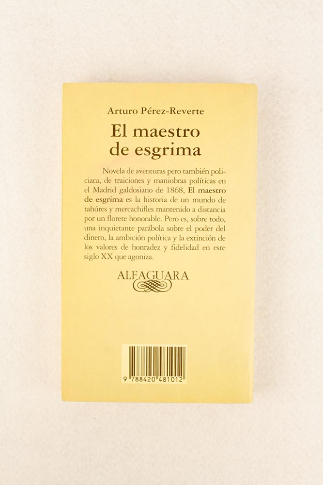 Novela de aventuras pero también policíaca, de traiciones y maniobras políticas en el Madrid galdosiano de 1868.En el Madrid galdosiano de 1868 Jaime Astarloa es un maestro de esgrima que trabaja dando clases de florete a algunos nobles de la ciudad. Todo el escenario cambia cuando entra en juego una dama que desea tomar clases de esgrima con Astarloa…El maestro de esgrima es la historia de un mundo de tahúres y mercachifles mantenido a distancia por un florete honorable. Pero es, sobre todo, una inquietante parábola sobre el poder del dinero, la ambición política y la extinción de los valores de honradez y fidelidad en este siglo XX que agoniza.El maestro de esgrima fue llevada al cine por Pedro Olea.